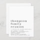Budget Simple Texte Famille Réunion Invitation de la fête. Une alternative économique pour PETIT 4,5 po x 5,6 po. Disponible dans un STOCK SEMI GLOSS 110 lb CARD ou un STOCK SATIN FINISH 80 lb THINNER PAPER. Les enveloppes sont en option. L'en-tête est grand en minuscule élégant avec les détails en dessous. Beaucoup d'espace blanc au sommet pour une ambiance contemporaine ! Personnalisez facilement le texte à vos propres détails.