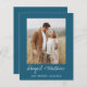 Budget Personnalisez cette photo Turquoise foncé et blanc simple et élégant double face Enregistrer la date Invitation avec votre message et détails. Cette invitation chic comprend une typographie manuscrite moderne et élégante pour la célébration du Mariage spécial Be.