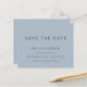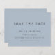 Typographie Simple Dusty Blue Enregistrer La Date. Un prix économique PETIT 4,5 po x 5,6 po alternatif. Disponible dans un STOCK SEMI-GLOSS 110 lb CARD qui est l'option par défaut (plus épais pour les invitations), OU un STOCK SATIN FINISH 80 lb THINNER PAPER (idéal pour les boîtiers). Les enveloppes sont en option et légèrement plus grandes que la taille de la carte. Elégance simple avec Save The Date dans un script moderne.Le reste du texte que vous pouvez facilement personnaliser.Montré ici en noir sur bleu Dusty, cependant le texte et les couleurs arrière - plans peuvent être changés si vous le souhaitez via l'option customiser plus.