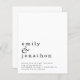 Simple Typographie Mariage Enregistrer La Date. Une alternative économique pour PETIT 4,5 po x 5,6 po. Disponible dans un STOCK SEMI GLOSS 110 lb CARD ou un STOCK SATIN FINISH 80 lb THINNER PAPER. Les enveloppes sont en option. Style informel. Vos noms sont grands dans une minuscule élégante avec les détails en bas et beaucoup d'espace blanc en haut pour le style contemporain. Personnalisez facilement le texte à vos propres détails.