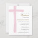 Budget Simple Watercolor Pink Cross Girl Baptism Invitation