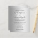 Un mariage d'hiver simple mais élégant avec un flocon blanc sur un faux arrière - plan métallique argenté à l'ombre, avec les noms du couple et la date mariage en script gris fusain et le texte restant en police sans serif. Le flocon de neige, les prénoms de la mariée et du marié, et la date du mariage sont répétés à l'envers.
