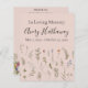 Des fleurs individuelles d'un côté et des arrangements floraux avec une place pour une photo sur ce flyer commémoratif à l'arrière.