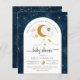 Lune de gloire d'or, étoiles et aquarelle planètes sur cet élégant modèle d'invitation pour bébé garçon douche.