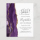 Le bord gauche de cette élégante invitation de fête d'anniversaire surprise est orné d'une bordure d'aquarelle violette ornée d'une parties scintillant en faux or. Le texte personnalisable combine écriture manuscrite, copperplate et polices italiques en gris fusain sur un arrière - plan blanc. L'envers est assorti d'une agate violette et dorée.