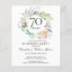 Doté d'une délicate guirlande de verdure fleurie d'aquarelle, cette fête botanique chic surprise 70e anniversaire mariage invitation budget peut être personnalisée avec vos informations spéciales d'anniversaire de platine. Au verso, une guirlande fleurie assortie encadre les dates d'anniversaire dans un texte élégant. Conçu par Thisisnotme©
