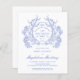 Une élégante crête vintage de fleurs bleues françaises occupe le devant de la scène pour cette invitation intemporelle à l'anniversaire. Orné, formel et très féminin fera que toute femme d'anniversaire se sentira très spéciale. Des fournitures de partie de coordination sont disponibles.