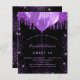 Pour un élégant Sweet 16, 16e anniversaire. Un arrière - plan noir élégant. Décoré de faux parties scintillant violet et de ballons. Personnalisez et ajoutez un nom, un âge et des détails de la fête. Le nom est écrit avec un script de style manuscrit