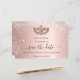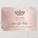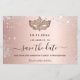 Une carte Save the Date pour une mascarade Sweet 16, 16e anniversaire. Un arrière - plan à l'apparence métallique or rose décoré de poussière de parties scintillant en faux argent et d'un masque masqué. Personnalisez et ajoutez une date et un nom/âge. Le texte : Save the Date est écrit avec un grand script de style à la main tendance avec des swashes.
