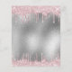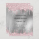 Une invitation moderne, élégante et glamour pour une fête Sweet 16, 16e anniversaire. Un arrière - plan à l'aspect métallique faux argent avec une élégante goutte de parties scintillant rose, la peinture goutte à goutte. Le nom est écrit avec un script de style moderne et noir écrit à la main. Personnalisez et ajoutez un nom, un âge et des détails de la fête.