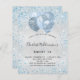 Pour un élégant Sweet 16, 16e anniversaire. Un arrière - plan métallique à l'aspect faux argenté. Décoré avec de la poussière et des ballons de faux parties scintillant bleus. Personnalisez et ajoutez un nom, un âge et des détails de la fête. Le nom est écrit avec un script de style manuscrit
