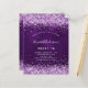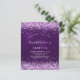 Une invitation moderne, élégante et glamour pour une fête Sweet 16, 16e anniversaire. Un arrière - plan de couleur violet profond avec de la poussière de parties scintillant rose faux. La couleur violette est inégale. Le nom est écrit avec un script de style moderne écrit à la main. Personnalisez et ajoutez les détails de votre fête.