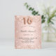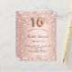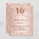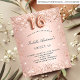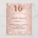 Pour une soirée Sweet 16, 16ème anniversaire. Un arrière - plan rose à gradient or. Décoré avec de la poussière de parties scintillant en faux or rose. Personnalisez et ajoutez un nom et des détails du parti. Le nom est écrit avec un script de style écrit à la main. Le numéro 16 est écrit avec une police de style ballon.