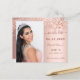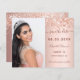 Une photo Sauvez la date pour une Sweet 16, 16e fête d'anniversaire. À l'avant : Ajoutez une photo de taille verticale. Un élégant or rose, couleur arrière - plan dégradé de rougeur, décoré avec de la poussière de parties scintillant imitation. Personnalisez et ajoutez un nom et des détails. Retour : symboles des médias sociaux, ajoutez vos comptes, ajoutez votre propre code QR à votre compte Instagram ou à votre site web. Cette carte est également disponible dans notre magasin avec des icônes de médias sociaux et des modèles pour vos comptes sur le dos.