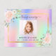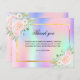Un carte de remerciements de sympathie girly et élégant avec photo. Arc-en-ciel, arrière - plan holographique en rose, violet, bleu et vert menthe, décoré de fleurs. Personnalisez et ajoutez votre note de remerciement.