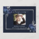 Une carte de remerciements de sympathie simple et élégante avec photo. Un arrière - plan bleu marine, un cadre faux argenté et des fleurs bleues. Personnalisez et ajoutez votre note de remerciement.