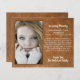 Cartes de remerciement de funérailles en cuir marron moderne. Ces cartes de condoléances funéraires présentent une photo personnalisée sur un design en cuir faux moderne avec la citation En souvenir aimant. Ces cartes de condoléances commémoratives sont parfaites pour les cartes de remerciement de funérailles ou les cartes de remerciement de célébration de la vie.