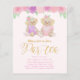 Jetez un mignon baby shower à thème pour la fête du thé avec ces adorables invitations BUDGET peintes à la main. L'invitation dit : "Rejoignez-nous pour un par-tea !" et le reste du texte est personnalisable. Ces invitations de baby showers de fête du thé ont deux mignons nounours vêtus d'élégantes robes et de casquettes. Ils boivent du thé dans de mignonnes tasses à thé rose et une tasse à thé rose peinte en rose. Il y a une bordure florale de roses dessinés à la main en haut.