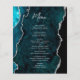 Budget Teal Blue Silver Agate Wedding Menu