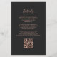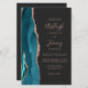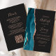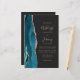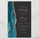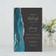 Save the cost of printing and mailing separate RSVP cards with this elegant modern all-in-one budget wedding invitation. The left-hand edge features a teal blue watercolor agate border trimmed with rose gold faux glitter. The customizable text combines dusty rose handwriting, copperplate and italic fonts on a dark off-black background. The reverse side provides space for wedding details, along with a QR code guests can scan to visit your website and RSVP.