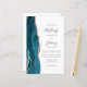 Save the cost of printing and mailing separate RSVP cards with this elegant modern all-in-one budget wedding invitation. The left-hand edge features a teal blue watercolor agate border trimmed with rose gold faux glitter. The customizable text combines charcoal gray handwriting, copperplate and italic fonts on a white background. The reverse side provides space for wedding details, along with a QR code guests can scan to visit your website and RSVP.