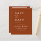 Mariage budget Boho Terracotta Enregistrer les cartes de dates qui ont une photo sur le devant. Les cartes Save the Date contiennent une typographie de script moderne, lettrée à la main, qui sont élégantes, simples et modernes à utiliser après que vous minimaliste simple célébration de mariage.