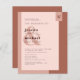 Faire-part de mariage budgétaire. Conception mariage moderne simple et géométrique. Tons terreux : terre cuite, crème, brun brûlé, cappuccino. Typographie audacieuse et élégante. Éléments géométriques. Les monogrammes de Mariée et de Groom et une grande esperluette en tant que symbole d’unité.