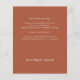 Cette invitation de feuille de papier est notre prix le plus bas dans cette conception. Le papier n'est pas aussi épais qu'un faire-part de mariage typique, c'est 12,5, et une invitation formelle est 17,5. Cette différence maintient votre coût à un bas niveau, mais vous devez en être conscient avant de commander. Si vous désirez une carte plus épaisse, achetez notre autre exemple dans notre collection. Cette feuille a un front blanc et un arrière - plan en terre cuite à l'envers. Sur le devant, vous trouverez le code QR de votre site mariage où vos invités peuvent RSVP, ainsi que vos noms. Au contraire, vous ajouterez un message personnel à vos invités. Vous pouvez alors placer vos prénoms, ou si vous préférez, vous pouvez supprimer ceci et le signer à la maison. N'hésitez pas à me contacter pour toute question.