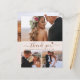 Budget, minimaliste moderne Boho Elegant Terracotta "Merci" Script 3 Photo Collage Mariage Merci personnalisé abordable carte mince à petit budget. Élégant modèle mariage avec quatre photos sur le devant et une photo sur le dos. ***VEUILLEZ NOTER! *** LE DOCUMENT BUDGÉTAIRE/VOL EST EN PAPIER MINCE. *** METTRE À NIVEAU LE PAPIER POUR UN PAPIER PLUS ÉPAIS. *** Avec le texte "Merci" dans une écriture de typographie à la main cursive police de script avec la queue de croustillant et petit coeur d'amour couleur terre-terre de terre sur arrière - plan crème. Personnalisez votre nom personnalisé et un message de remerciement. Si vous préférez écrire votre note à la main, supprimez simplement l'exemple de texte pour gagner de l'espace. Excellent choix pour un mariage à petit budget.