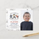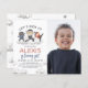 Préparez-vous à une fête d'anniversaire sur le thème du ninja. Cette conception dynamique et budgétaire présente une aquarelle captivante illustrant trois petits ninjas, qui frappent chacun leur pose d'art martial préférée, émergeant d'une explosion de fumée, ou flottant sur un nuage. Customisez l'invitation en ajoutant une photo personnalisée du garçon d'anniversaire sur le côté droit. L'expression ludique "Let's Kick It!" au-dessus des ninjas combine le concept de traîner avec le monde des arts martiaux. L'invitation appelle tous les ninjas à se joindre à la fête, avec le nom du garçon d'anniversaire en lettres rouges gras et l'âge en script bleu amusant. Les détails de l'événement sont présentés dans une typographie simple et propre, avec des étoiles ninja encadrant les informations importantes de la date et de l'heure. Retournez la carte pour révéler un motif de nuages et d'armes étoiles ninja. Parfait pour les 4 à 10 ans, ce design énergique donne le ton d'une fête d'anniversaire passionnante et mémorable qui promet action, aventure et plein de plaisir. Customisez cette invitation afin de refléter les détails spécifiques de votre parti. Dans le cadre de la sélection du budget sur Zazzle, cette feuille n'est pas une taille invitation standard ou une qualité de papier. Si vous voulez ce design sur une carte d'invitation, vous pouvez le trouver dans notre magasin ou utiliser le Zazzle Make Machine pour le transférer sur le produit de votre choix. N'hésitez pas à m'envoyer un message pour toute question, veuillez noter que je ne peux pas modifier une commande existante. Parcourez notre collection pour plus d'invitations d'anniversaire de garçon!