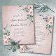 Budget All in One Dusty Rose Roses Boho Parties scintillant Élégant Script Typographie Faire-part de mariage... Notre faire-part de mariage rose boho "All in One" à un prix abordable présente une parties scintillant dorée rose brillante en or sombre arrière - plan superposé de bouquets de roses pastel et poussiéreux et verdure encadrant votre élégant texte d'invitation de typographie script. Le verso de l'invitation contient tous les détails que vous verriez généralement sur des cartes séparées dans le paquet mariage. Cette faire-part de mariage tout-en-un de style moderne a été conçue pour être à la fois élégante et économique... sans parler des économies de temps. Tous les exemples de texte peuvent être facilement révisés avec vos propres informations sur le modèle de personnalisation.