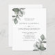 Budget Tout en un Elégant Dusty Green Eucalyptus Faire-part de mariage... Notre unique faire-part de mariage botanique "All in One", abordable, présente d'élégantes branches d'eucalyptus aquarelles dans des tons de vert poussiéreux bordant votre texte d'invitation. Le verso de l'invitation contient tous les détails que vous verriez généralement sur des cartes séparées dans le paquet mariage. Cette faire-part de mariage moderne à l'avant et à l'arrière a été conçue pour être à la fois élégante et économique... sans parler des économies de temps. Au verso il y a aussi un modèle graphique de code QR que vous pouvez remplacer par votre propre code (ou supprimer si vous n'avez pas l'intention d'en utiliser un... et aussi supprimer le texte qui fait référence aux informations de code QR). Tous les exemples de texte peuvent être facilement révisés avec vos propres informations sur le modèle de personnalisation.