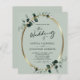 Budget Eucalyptus Gold All in One avec les détails sur le Faire-part de mariage d'essai RSVP de code QR... Notre faire-part de mariage botanique "tout en un", abordable, présente un cadre ovale en faux or orné de feuilles d'eucalyptus émeraude sur un arrière - plan de sauge léger. Chic calligraphie moderne affiche le texte pour "le Mariage de", "et" ainsi que "réception à suivre" accompagné d'élégante typographie serif pour le texte que vous pouvez personnaliser. L'arrière-plan de l'invitation contient tous les détails que vous verriez généralement sur des cartes séparées dans le paquet mariage. Cette faire-part de mariage de style moderne a été conçue pour être à la fois élégante et économe du temps... sans parler des économies de temps pour les futures mariées occupées. Il y a aussi un modèle graphique de code QR que vous pouvez remplacer par votre propre code en tapant simplement l'URL de votre site mariage. Tous les exemples de texte (hormis les graphiques de calligraphie) peuvent être facilement révisés avec vos propres informations sur le modèle de personnalisation.