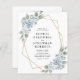 Budget Tout en un QR Code Dusty Blue Floral Gold Cadre géométrique Faire-part de mariage... Notre faire-part de mariage à fleurs bleues "avant et arrière" abordable comprend des bouquets de fleurs bleues poussiéreuses sur un cadre géométrique doré bordant votre texte d'invitation personnalisé. Le verso de l'invitation contient tous les détails que vous verriez généralement sur des cartes séparées dans le paquet mariage, y compris le code QR pour votre site mariage — que vous pouvez créer directement sur le modèle de personnalisation de Zazzle. Ce style moderne tout en un faire-part de mariage a été conçu pour être à la fois élégant et soucieux du budget... ainsi que des économies de temps. Tous les exemples de texte des deux côtés peuvent être facilement révisés avec vos propres informations sur le modèle de personnalisation.