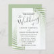 Vos invités aimeront ce design tropical élégant et sophistiqué. Il présente un grand feuillage tropical en aquarelle sur un arrière - plan vert sauge doux. La calligraphie moderne se situe dans une arche transparente en forme d'arc. Facile à modifier avec vos détails uniques.