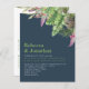 Le Faire-part de mariage de papier budget présente une illustration feuille tropicale aquarelle avec un modèle bleu marine et vert. Design typographique moderne et propre, cette invitation de mariage est prête pour vous à customiser avec les détails de votre journée spéciale. Fait partie d'une gamme de papeterie.