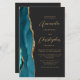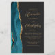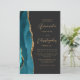 Le bord gauche de cette élégante faire-part de mariage moderne est doté d'une bordure turquoise en aquarelle bleue ornée d'une parties scintillant en faux or. Le texte personnalisable combine un script de couleur or et des polices sans serif sur un arrière - plan noir en ardoise. L'envers offre de l'espace pour les détails mariages sur un arrière - plan noir en ardoise solide, ainsi qu'un code QR que les clients peuvent scanner pour visiter votre site Web et RSVP, ce qui permet d'économiser le coût d'impression et d'envoi de cartes RSVP séparées.
