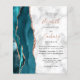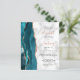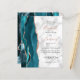 Le bord gauche de cette élégante faire-part de mariage moderne est doté d'une bordure turquoise en aquarelle bleue ornée d'une parties scintillant d'or en faux rose. Le texte personnalisable combine écriture rose poussiéreuse avec cuivre noir et polices italiques sur un arrière - plan en marbre gris et blanc. L'envers présente un design d'agate or turquoise et rose assorti.