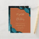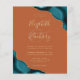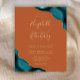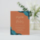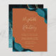 Une aquarelle bleue turquoise aquarelle design taillée avec parties scintillant faux or apparaît dans deux coins de cet élégant design. Personnalisez-le avec les noms du couple en écriture manuscrite couleur or sur une grande esperluette. Ajoutez les détails du mariage en cuivre doré et en polices italiques sur un arrière - plan orange brûlé ou rouille. L'envers présente un design d'agate turquoise et or assorti.