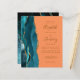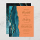 Cette élégante faire-part de mariage moderne dispose d'une bordure turquoise aquarelle ornée d'une parties scintillant en faux or. Le texte personnalisable combine écriture brune, copperplate et polices italiques sur un arrière - plan mandarin. L'envers présente un design d'agate turquoise et or assorti. Une combinaison de couleurs idéale pour un mariage de automne.