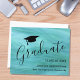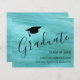 Cette faire-part moderne de graduation comporte une casquette de graduation sur un arrière - plan turquoise. Personnalisez avec votre nom, votre école et votre année.