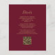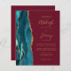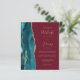 Économisez le coût d'impression et d'envoi de cartes RSVP séparées avec cet élégant faire-part de mariage tout-en-un moderne. Le bord gauche présente une bordure d'aquarelle bleue turquoise, recouverte d'une fausse parties scintillant dorée. Le texte personnalisable associe écriture manuscrite dorée, copperplate et polices italiques sur un arrière - plan rouge bordeaux. L'envers offre de l'espace pour les détails mariages sur un arrière - plan bordeaux solide, ainsi qu'un code QR que les invités peuvent scanner pour visiter votre site Web et RSVP.
