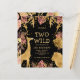 Cette invitation à la fête du deuxième anniversaire de cette "deux sauvages" jungle safari a pour thème les animaux faux en or (girafe, lion et singes), le feuillage de la jungle dorée et rose, et un arrosage de confettis d'or sur un arrière - plan noir. Ajoutez le nom de la fille d'anniversaire et les détails de la fête dans le texte de couleur or. L'envers comporte une bordure coordonnée de feuillage rose et or.