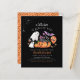 Cartes modèles d'invitation budget et éffrayant Halloween pour un baby shower d'octobre ! Un design noir et orange, sans distinction de genre, idéal pour les petits garçons et les petites filles, attendu vers octobre. Cette conception présente une aquarelle illustrant un mignon chat noir portant un casquette violet et tenant une baguette magique, deux citrouilles orange souriants, deux fantômes éffrayants, un casquette de sorcier, une chauve-souris violette et un drôle de ballon orange. Dans le coin supérieur gauche, il y a une toile d'araignée. En haut de cette invitation on peut lire "Un petit livre est presque attendu !" et les détails de votre événement apparaissent en bas. Il y a deux variantes de couleur de ce design pour vous de choisir parmi! Dans le cadre de la sélection du budget sur Zazzle, cette feuille n'est pas une taille invitation standard ou une qualité de papier. Si vous voulez ce design sur une carte d'invitation, vous pouvez le trouver dans notre magasin ou utiliser le Zazzle Make Machine pour le transférer sur le produit de votre choix. N'oubliez pas de consulter notre magasin pour plus de designs! N'hésitez pas à me contacter si vous avez des questions ou souhaitez un design sur mesure !