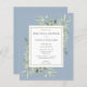 Doté de feuilles délicats et verdoyants d'aquarelle sur un arrière - plan bleu poussiéreux, cette invitation chic et wedding shower budget peut être personnalisée avec vos informations spéciales de douche nuptiale. Conçu par Thisisnotme©