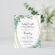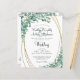 Invitations de mariage botanique modernes et élégantes imprimées sur papier léger idéal pour les budgets conservateurs et/ou livrées à la main aux invités avec eucalyptus vert et or accent et élégant style calligraphie script et texte dans un gris fusain doux. Contactez le concepteur via Zazzle Conversation ou makeitaboutyoustore@gmail.com si vous souhaitez modifier ce design, sur un autre produit ou des éléments de coordination.