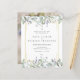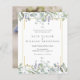 Un joli faire-part de mariage à budget avec de jolis feuilles sauge et lilas qui tombent sur un élégant cadre doré renfermant vos détails mariages ensemble dans un texte élégant classique et votre photo spéciale au verso. Conçu par Thisisnotme©