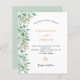 Un arrière - plan blanc chic décoré de sprigs botaniques verts et faux or, de fleurs vertes et de feuillage. Personnalisez et ajoutez vos noms et les détails du mariage. Lettres noires et dorées. Dos : couleur arrière - plan verte.