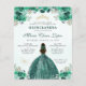 Budget Emerald Green Gold Floral Princess Tiara Crown Quinceañera Invitation