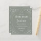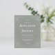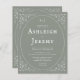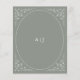 Cette élégante invitation de mariage associe une belle police vintage avec une police sans serif. Le texte blanc est encadré par un mince ovale entouré de délicats motifs botaniques dans les coins, sur un arrière - plan vert sauge. Le cadre est répété à l'envers, entouré d'une paire d'initiales monographiques.